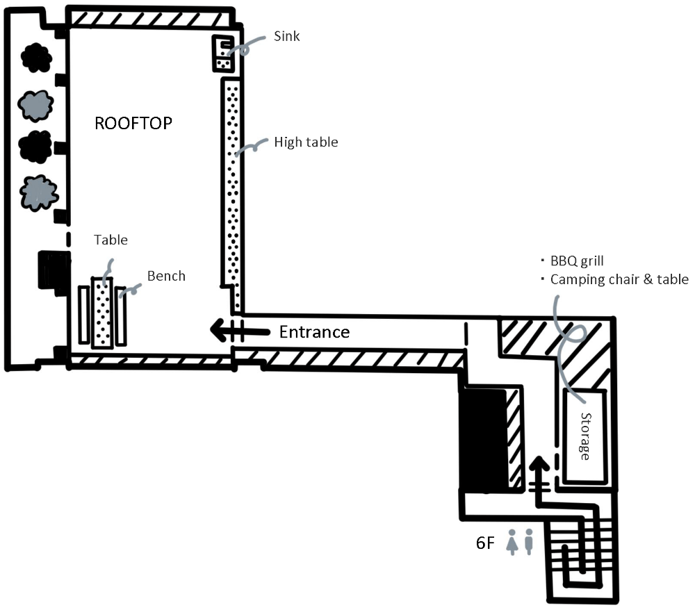 A spacious open rooftop terrace, just a 3-minute walk from Otsuka Station. Enjoy views of the shopping street and the Toden tram.