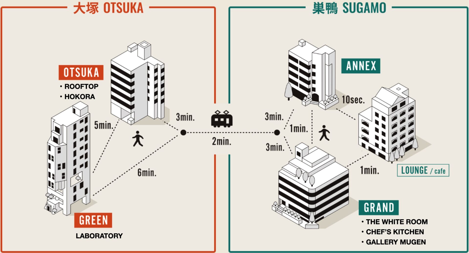 RYOZAN PARKのイベントスペースは巣鴨と大塚を拠点に計7ヶ所あります。