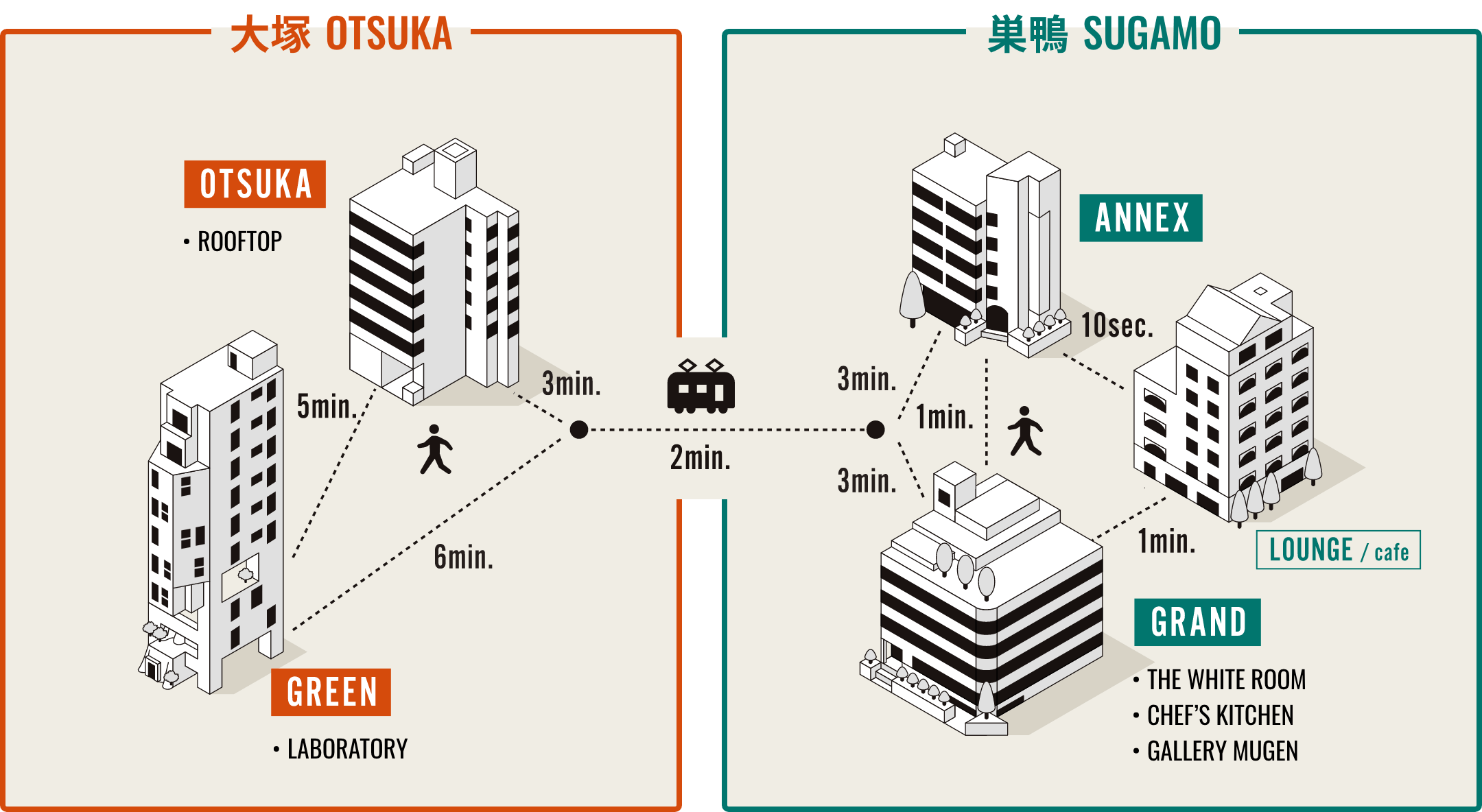 RYOZAN PARKのイベントスペースは巣鴨と大塚を拠点に計6ヶ所あります。