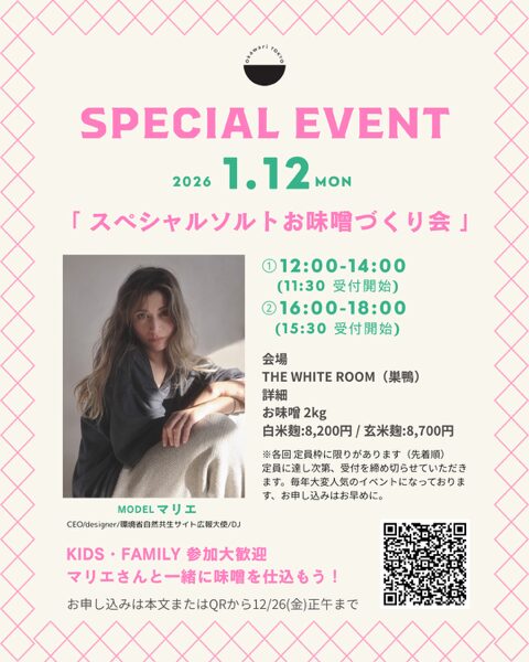okawari TOKYOの塩を使って、マリエさんと一緒に仕込む、特別なお味噌づくり。