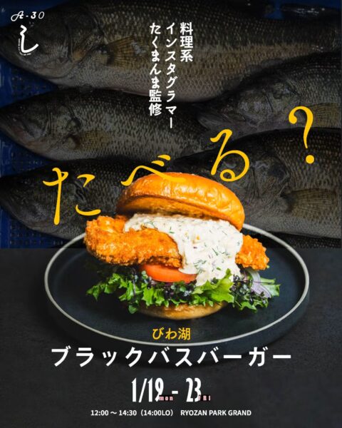 【1/19(月)~23(金)限定ランチ営業】たべる? びわ湖ブラックバスバーガー