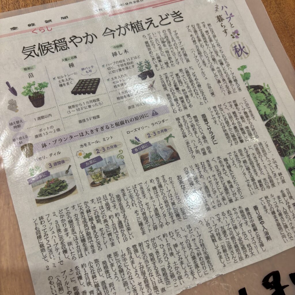 シェアオフィスのメンバーであり、ハーブコンシェルジュとして活躍されている 小早川さん の記事が、9月26日付の産経新聞 に掲載されました!