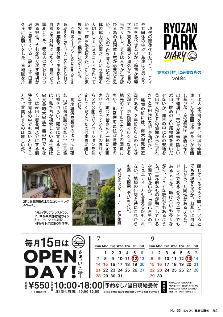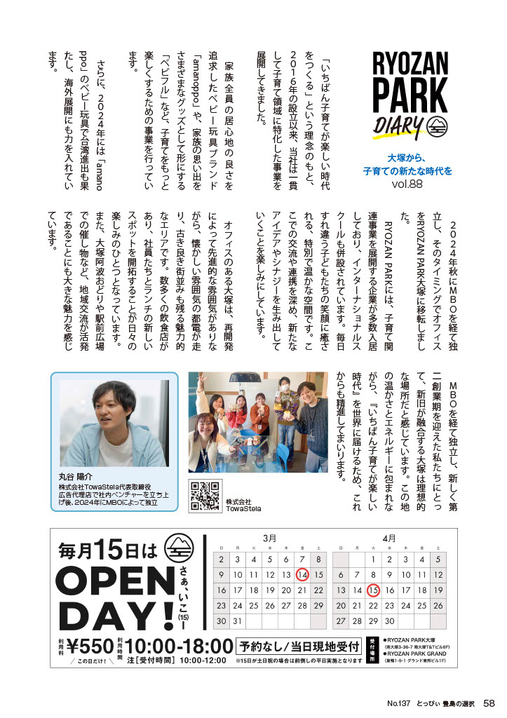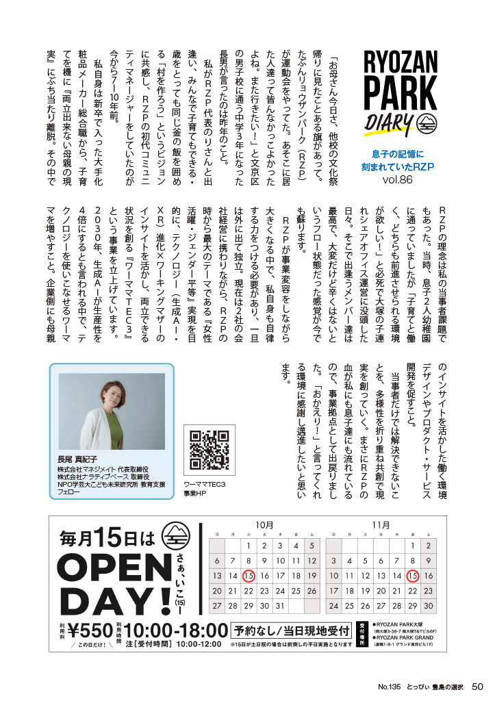 とっぴぃ「RYOZAN PARK DIARY」アーカイブ記事 2026.01.26 RZPの仲間たちを紹介するとっぴぃの「RYOZAN PARK DIARY」のVol.82~Vol.91の記事をまとめました。 この記事をシェアする URLをコピーする