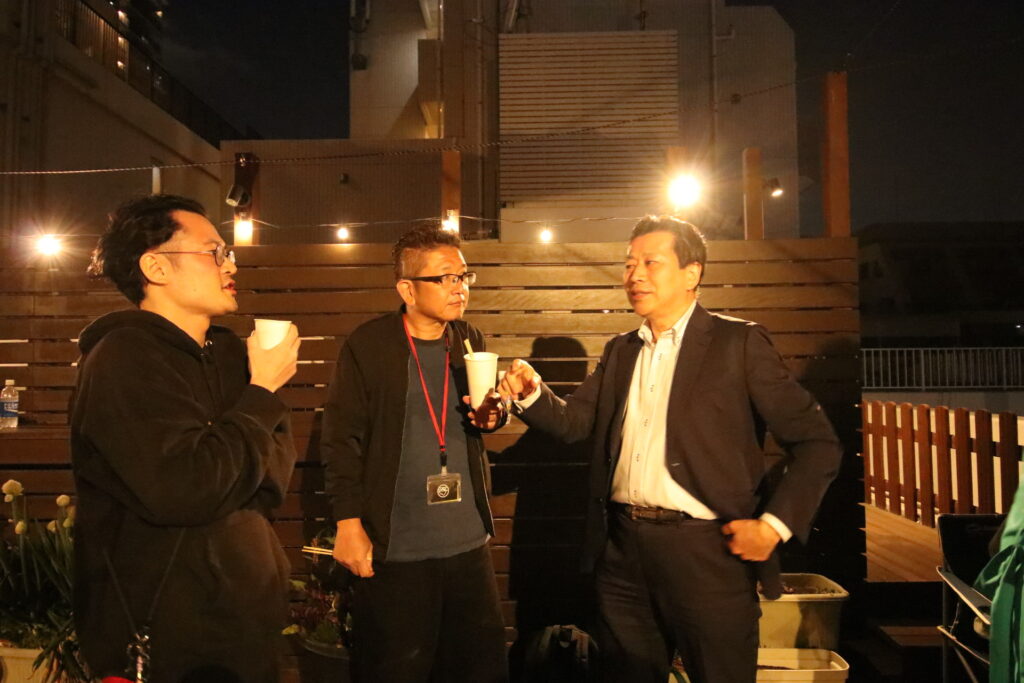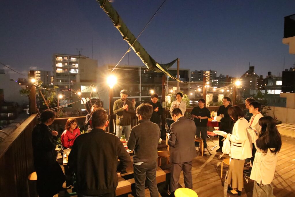 会場は大塚の屋上だったのですが…当日は風がとても強く、紙皿が飛ばされそうになる場面も。